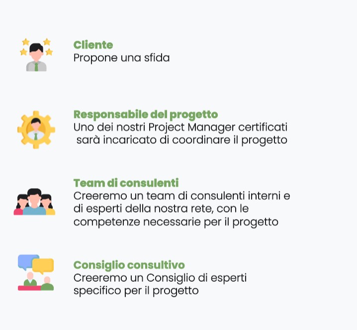 Apri le porte della tua azienda all'era digitale. Grazie al nostro network possiamo metterti in contatto con oltre 50.000 esperti di innovazione, trasformazione e tecnologia, supervisionati da project manager formati e certificati da Opinno